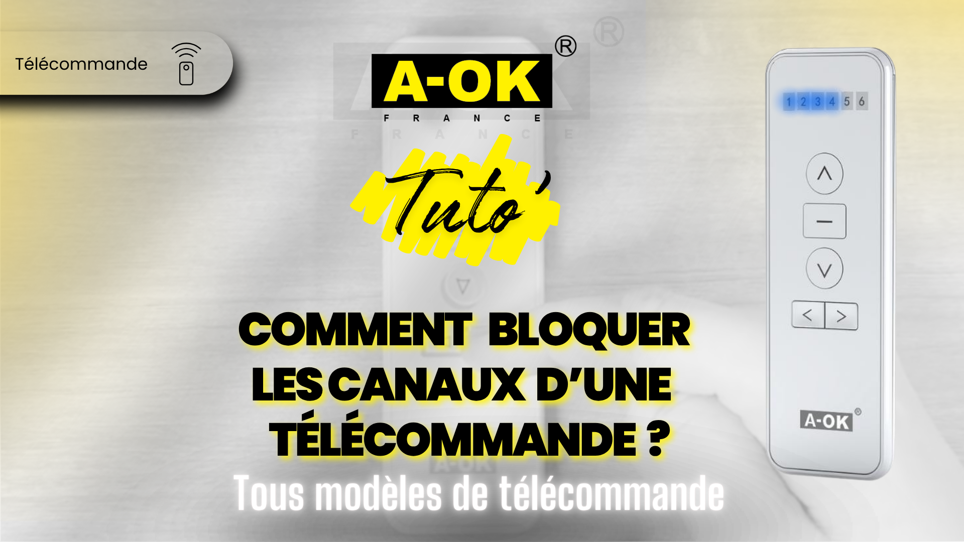 La télécommande AC123 A-OK France est équipée de touches de commande et disponible en version 1, 2, 6 ou 16 canaux, pour s’adapter à tous vos besoins.