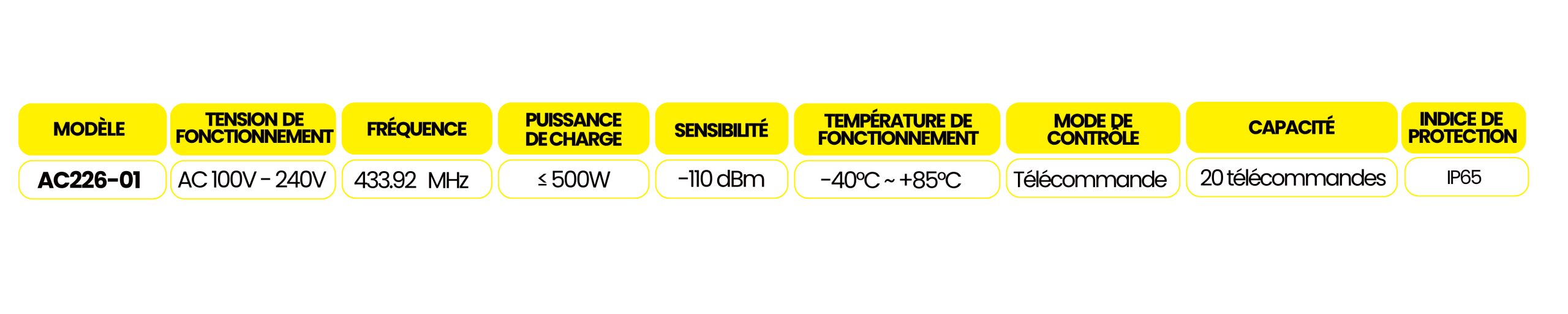 Le récepteur AC226 se distingue par son format compact, idéal pour une installation discrète dans tous types d’environnements. Son design entièrement étanche (IP65) et son transformateur scellé en plastique assurent une excellente stabilité et une protection renforcée contre l’humidité et les infiltrations.